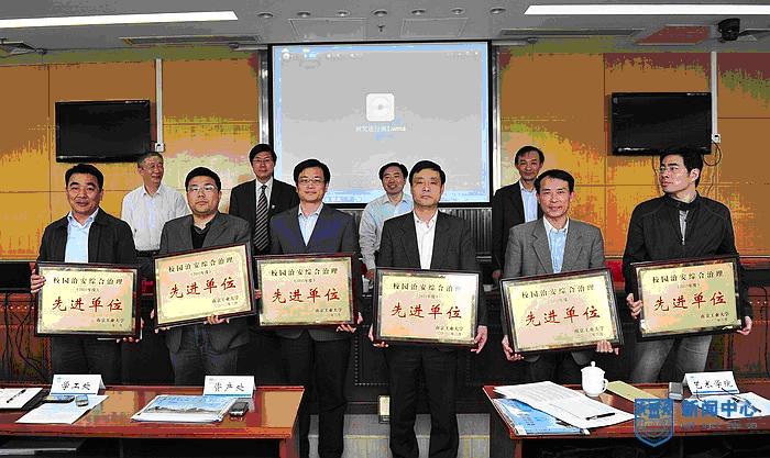 校纪委书记崔益虎宣布了2011年度综合治理先进单位和先进个人表彰决定,我处荣获了综合治理先进集体,周国权获得了先进个人光荣称号。副校长刘伟庆、校纪委书记崔益虎、校长助理李彬、保卫处处长朱兴同为获奖的先进集体和先进个人进行了颁奖。副校长刘伟庆与资产处等两家二级单位代表签订了《南京工业大学安全目标管理责任书》。